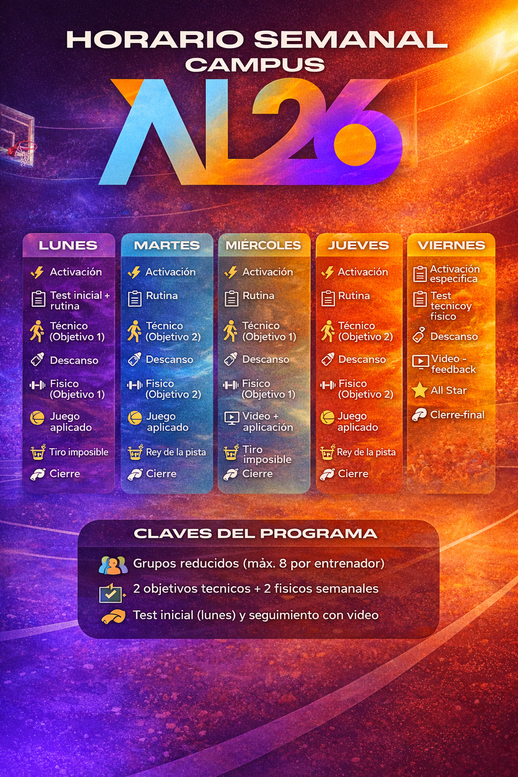 Es un campus orientado a la mejora individual del jugador.